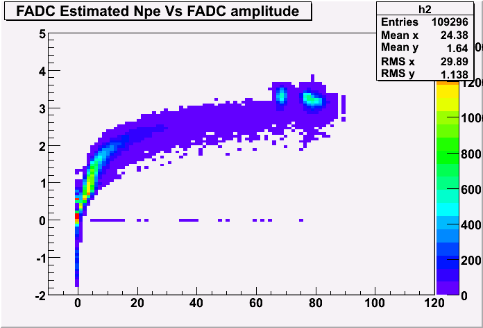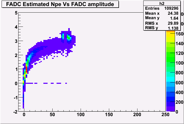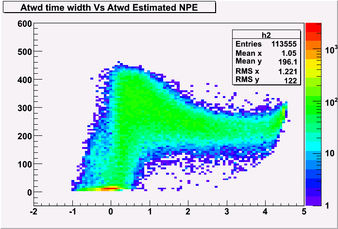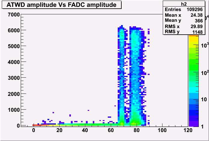 Red dots are NPE of a given channel which has atwd npe greater than fadc npe.